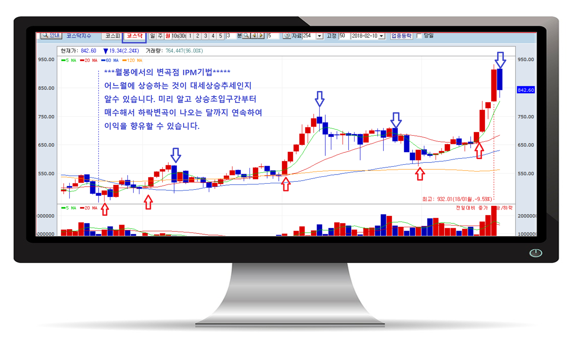 그래서 몇 개월 뒤에 중장기 월이 변곡점이 있는 시기를 알고 기다렸다가 그 달에 변화를 보이고 내리는 주식이 또 변곡일에 오른다면 그것은 추세가 확인된 것이므로 그 종목을 손실없이 안전하게 매수할 수 있는 것이고, 또 변곡일에 하락한다면 매도하는 그런 이익의 최대실현의